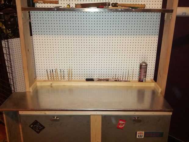 Marcar la forma que necesita cortar para que la parte superior de su banco, asegúrese de dejar una pulgada extra en todos los lados por lo que se puede doblar en todos los bordes de la mesa. Una vez que tengas todos extendió poco de pegamento en la parte superior de su banco. Usé 3M super 77 para esto pero puede usar los deseos de su corazón. Su metal en la parte superior de la gota y asegúrese de todo está alineado, luego esperar a que el pegamento se seque te sugiero dejarlo pesado de la materia para asegurarse de que se pega. Cuando los dos se han convertido en mejores amigos es tiempo de doblar los bordes para que encajan muy bien en los bordes de la tapa de tabla. Tenga cuidado al hacerlo ya que los bordes pueden ser afiladísimo.