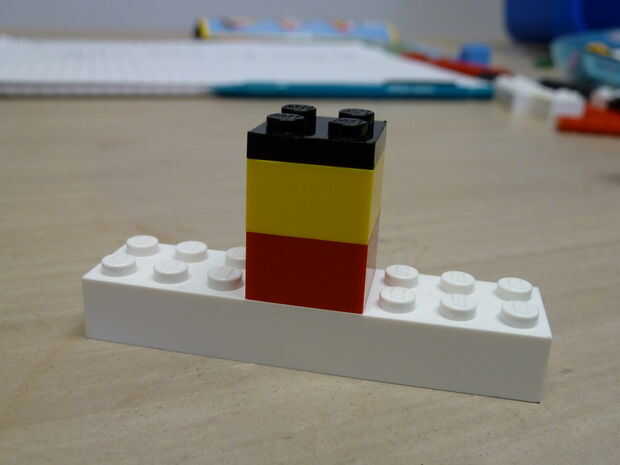 lo que sigue es un proceso paso a paso para la construcción de un helicóptero de Lego.Paso 1: Las piernas Tomar la pieza amarilla plana de (2 x 4) y coloque dos piezas negras de planas (1 x 4) en la parte inferior. Estos negros son las patas del heli