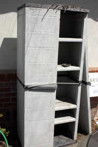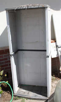 llego a un armario de plástico que estaba lista para la tirada. Esto me dio una idea! Por lo tanto, apareció la estantería y la puerta.