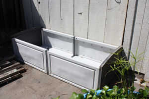 esta por encima del estanque contenedor de tierra se puede hacer fácilmente para construir un estanque o un cuadro de jardín elevado. Hecho de viejas puertas de armario de almacenamiento, es hermoso después de todo, se coloca juntos.Paso 1: El armari