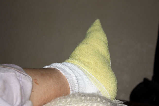 En el proceso de ayudar a mi esposo la charca nueva "barata" de la línea, caminó sobre una pila de madera y caminó en un clavo enorme! Aprendí mi lección dolorosa, no usar chanclas en un área de construcción.