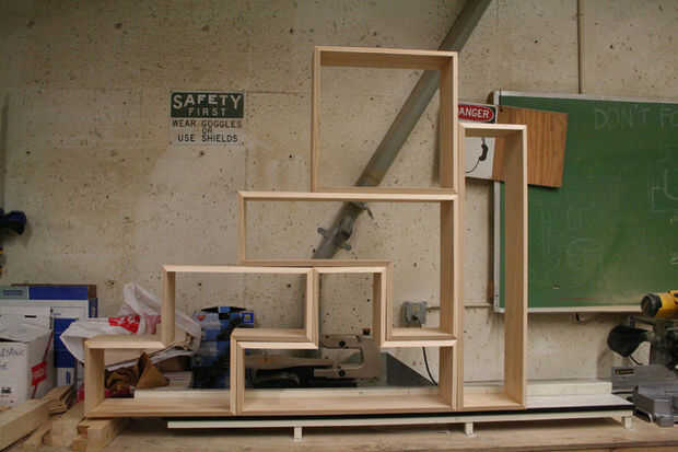 Montar este quieras. Lo hice mal camino aunque, te diré que mucho. Montaje de las piezas interiores y luego los 20" seguidos de 10" fuera de pedazos de piezas parece ser el camino a seguir. Usted puede decir de esta foto, pero una de mis piezas fue aproximadamente 1/4" de demasiado tiempo, y como resultado, se inclina la parte superior de la S. La razón que esto sucedió es porque esta cuando originalmente corté las piezas, y me faltaba uno 10" pieza. Así que había alineado hasta la antigua línea como el mejor podía y corte, pero seguía siempre tan levemente apagado.