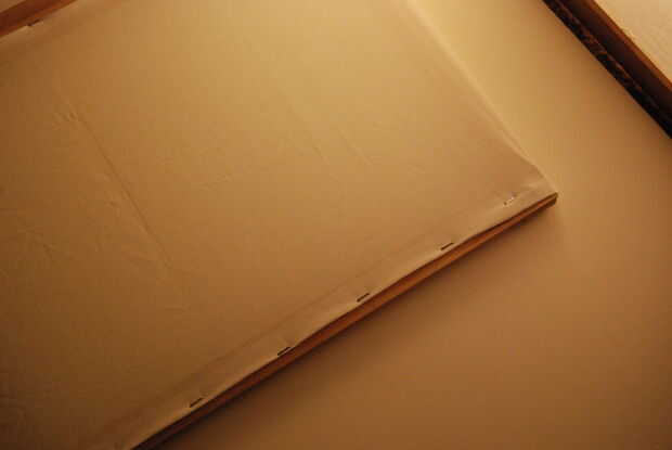 Añadir una grapa a cada final de los listones largos para sostener el borde de la tela.