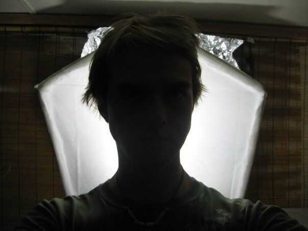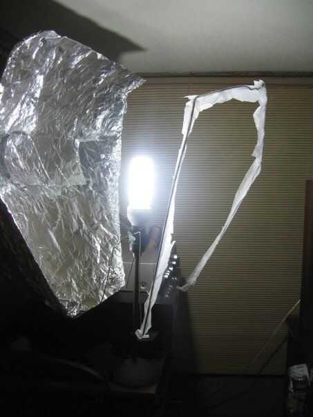 Con un reflector mucho más grande, más esta luz proporciona una fuente luz mucho más suave que el softbox. El reflector tiene un ángulo para casi toda la luz a través de la pantalla; Esta foto muestra la forma final del reflector, pero la pantalla se ajustó a casi paralelo a la pantalla.