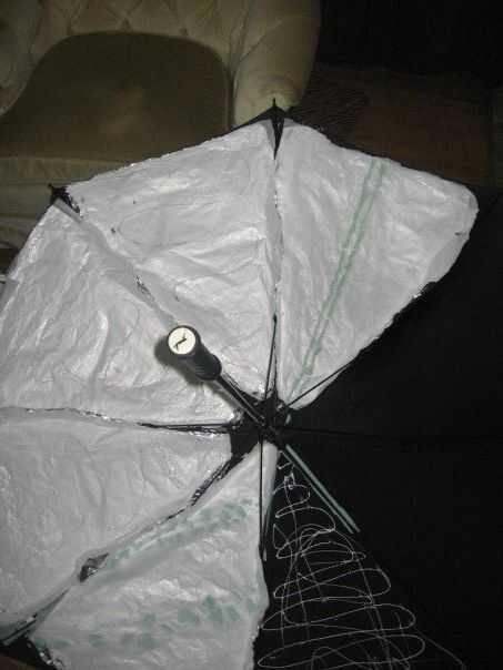 4. anticipar el peso del proyector, montar el paraguas a través del stand de micrófono con un montón de embalaje cinta de fuerza y un poco cinta aislante de color.