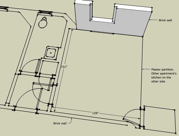 La pared de la ventana da a un patio relativamente tranquilo no Insonorizamos la pared de ladrillo, pero comprar una ventana insonorizada instalada dentro del marco de la ventana. Porque el armario estaba en el camino no fuimos capaces de tratar la pared posterior o. Ya que es una pared de ladrillo tiene una calificación de sonido bastante buena, pero por desgracia aún podemos escuchar cuando nuestros vecinos abren y cerrar sus puertas. Ese tipo de sonido del impacto es casi imposible de eliminar...