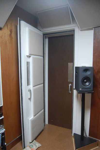 Que es cuando yo realmente suerte hacia fuera: en Craigslist encontré alguien que fue dejando un estudio de alquiler y desmontar todos los accesorios caros, personalizados. No sólo obtuve a un par de puertas el tamaño perfecto para mi espacio ($500 para 2 puertas y Marcos), pero tengo montón de paneles bellamente construidos para el tratamiento de sonido.