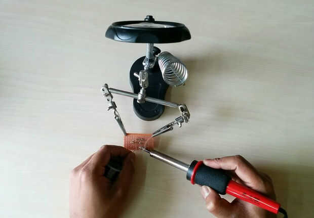 Para hacer el circuito terminado, soldado los componentes en una tarjeta perforada.