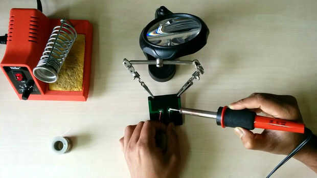 puede construir una luz solar sodering un diodo emisor de luz para un 4.5v de células solares.
