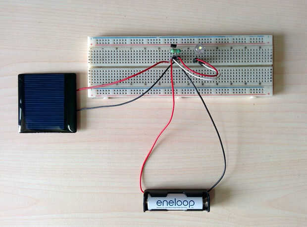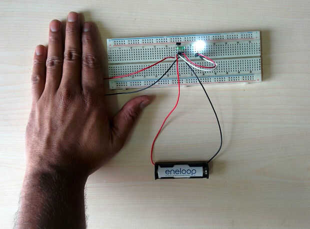 Para simular la condición oscura, cubrir el panel solar con su palma. Ahora el LED debe brillar.