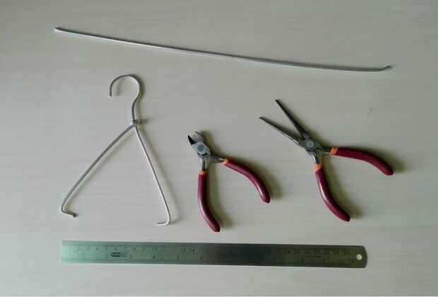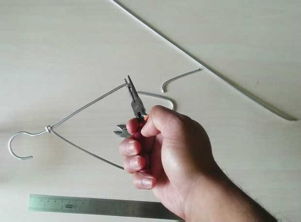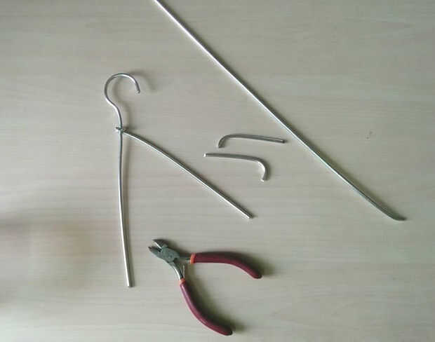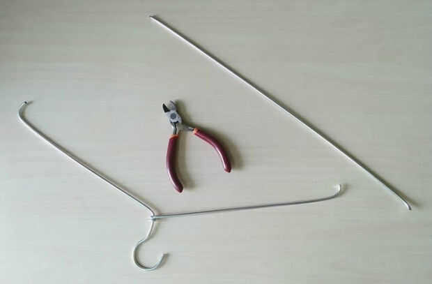 Primero se corta el colgador con las palas trasero pinzas en ambos extremos. Ahora uso la parte de colgar y mantener la parte recta para uso futuro.