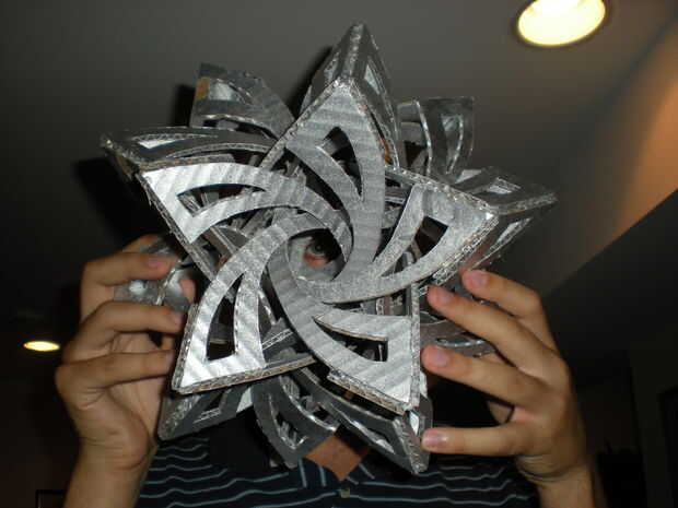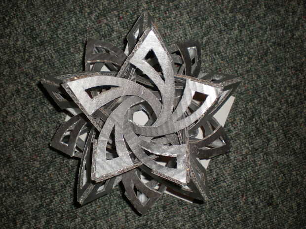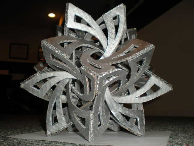 un frabjous es un fresco buscando estructura dodecaedro hecha de 30 piezas en forma de "S". Diseñado por George Hart (http://www.georgehart.com/sculpture/frabjous.html), mi cartón frabjous se inspiró en evilmadscientist.com. Utilice su Flickr para tener una idea de donde van las piezas.