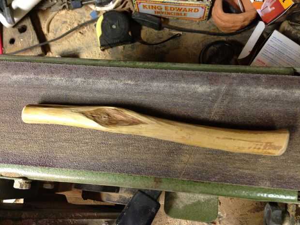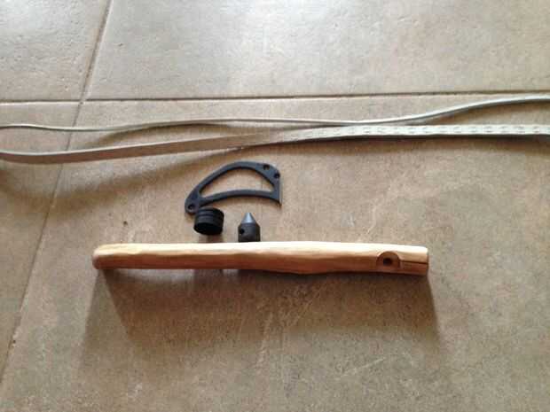 Para esta versión no le puedo dar una lista de piezas exactos, yo un poco juntos lanzaron algunas probabilidades y extremos tenía puesta alrededor. Pero daré un rápido correr hacia abajo. Poner la espiga trasera y la tapa para añadir peso. El metal fino del freno es bastante liviano. Partes: usado bicicleta freno de disco, madera para el mango (yo usé sauce de diamante), 1/2 o más grande acero redondo rod, puntera de acero, cuero, pintura y cartilla. Herramientas; Sierras de cinta, amoladora, lijadora de banda, herramientas de trabajo de cuero