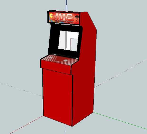 Había desechado que el diseño y partió para hacer nuestra propia. Principalmente que fue inspirado por el Neo Geo MVS. Es grande, rojo y no parece demasiado complicado de construir. Hemos diseñado nuestro gabinete en Google SketchUp (un programa de diseño 3D libre multiplataforma), y estábamos muy seguros diseñar cada poco solo para asegurarse de que no corremos en problemas a la mitad de la construcción. Usted puede encontrar los archivos de diseño abajo. No dude en utilizarlos o cambiarlos en cualquier forma que desee siempre y cuando no venden y nos menciona como una fuente si (re) carga cualquiera de ellos (licencia pública GNU).