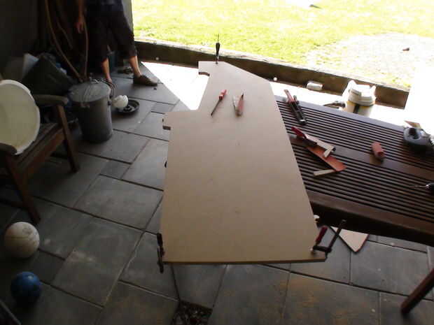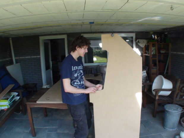 Dibujar la forma de los lados de la máquina en el MDF. Medir muy cuidadosamente, usted puede sólo vio una vez, hormiga no quiere equivocarse.