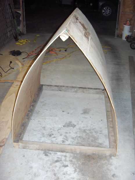 La siguiente tarea fue agregar a un 50x50mm-miembro de la Cruz a un extremo, 400mm del suelo. No tomar una foto de esto, pero se puede ver en el siguiente paso cómo se hincha la forma. Si había cortado las paredes laterales de una plantilla como se describe en el paso 1, no habría necesitaba esto como la pared de extremo control de la curva: la plataforma de anidación entonces podría simplemente atornillar a la pared lateral.