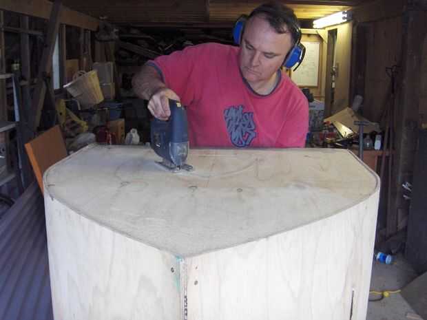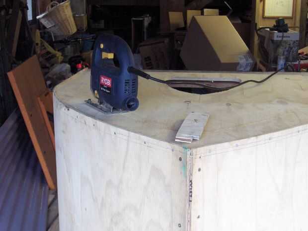 Ahora recorte la puerta grande, recordando a tornillo en calas como pasar las esquinas y otro justo detrás de la sierra justo antes de llegar al final del corte.