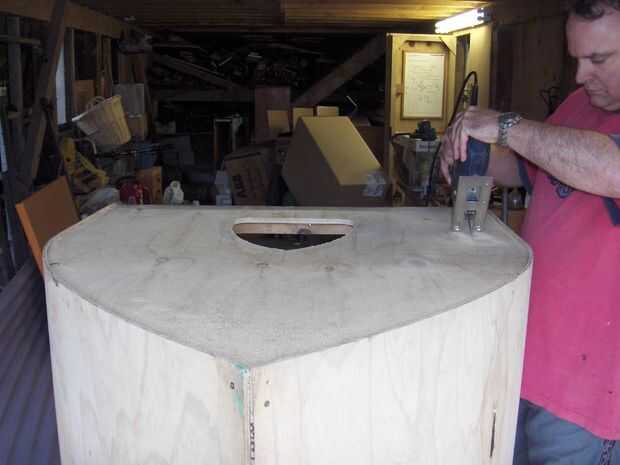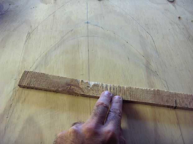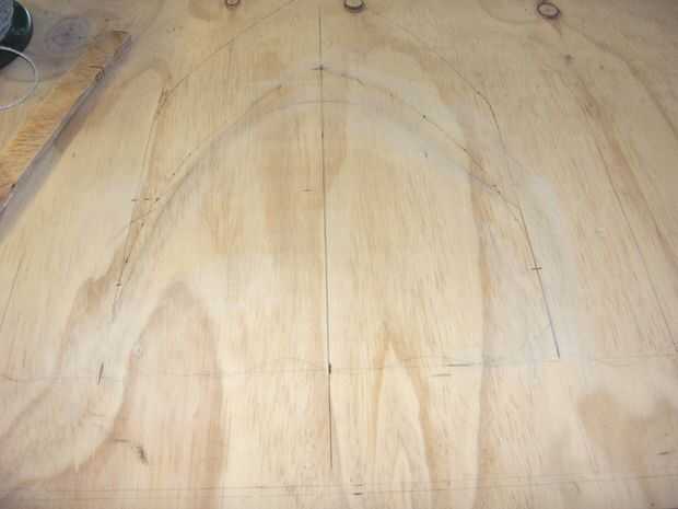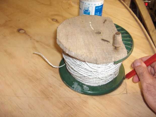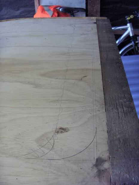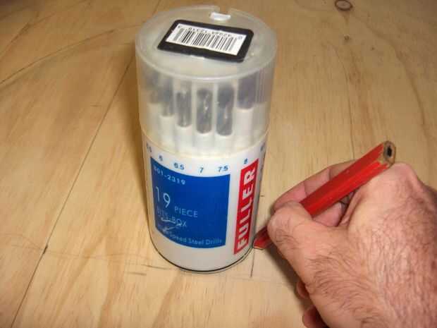 Luego necesitas redondear las esquinas: esto no sólo parece más agradable, pero es una lección que aprendimos de la puerta superior en el otro extremo. Comencé con mi broca contenedor como plantilla, pero decidió la curva era demasiado apretada así que utilizar un carrete de alambre de la cerca eléctrica. Puede usar latas de pintura, latas, frisbees. Lugar la plantilla por lo que su curva apenas toque las líneas de ambos lados de la esquina entonces dibujar alrededor de ella. Dejarlo en eso por ahora.