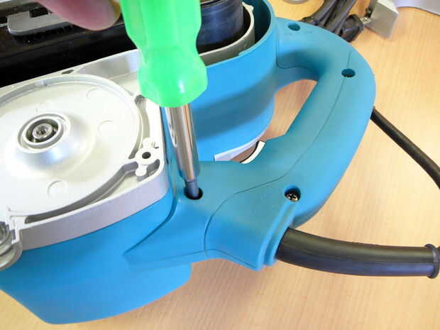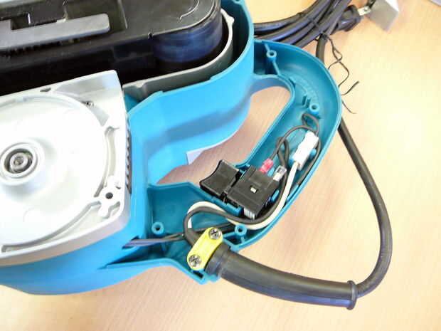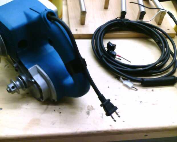 Esto es extraño. El cable que va desde el interruptor hasta el motor es un calibre más ligero que el alambre en el cable. Probablemente puede ser mejorado. También me gustó la forma que el cable es apuntado hacia arriba y por encima de la manija, por lo que podrá cambiarla debajo del interruptor de alguna manera.