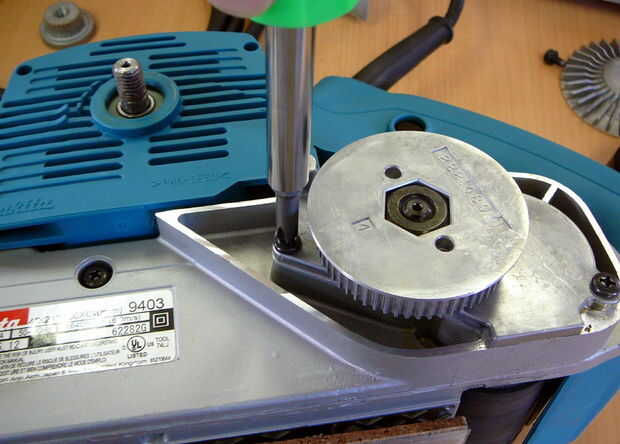Una última reflexión sobre este paso. Era obvio que la nueva correa sería un tamaño extraño, así que adquirí una longitud de la correa de enlace de mi tienda local de Woodcraft, que sabía que podía hacer de cualquier longitud que necesitaba. Encima de la capacidad de medida, enlace correas transferencia energía muy eficiente, por lo que es un ganar-ganar.