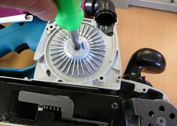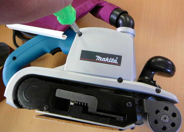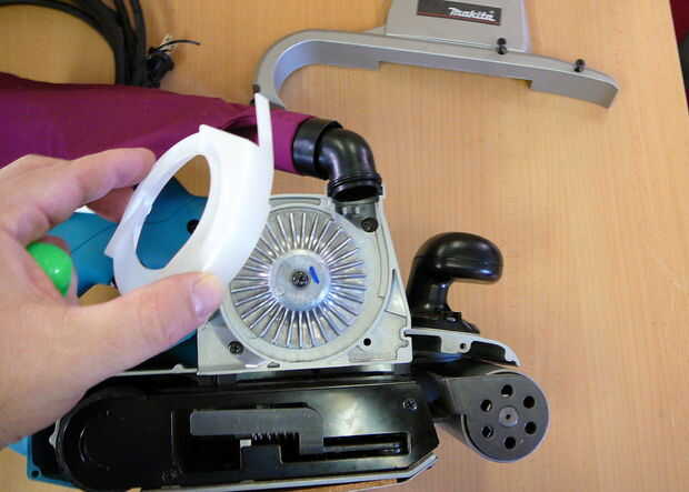 La parte de plástico blanco parece un derivador o un sello que conserva y canaliza el polvo en la bolsa. Nunca he mirado en esta parte de una lijadora de antes por lo que es clase de fresco para ver el camino que sigue el polvo del rodillo posterior por el ventilador y en la bolsa. Simple e inteligente. Me gusta y ahora debe ir! Esta parte sólo se levantó justo al lado. Se llevó a cabo en lugar por la presión desde el lado del metal fundido de la lijadora.