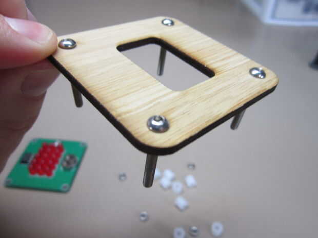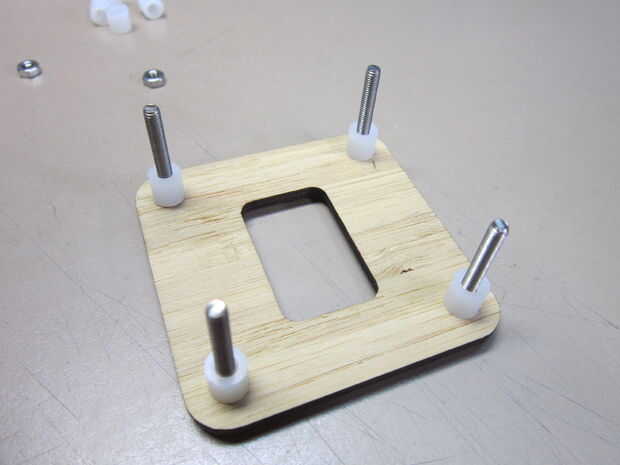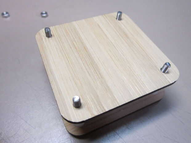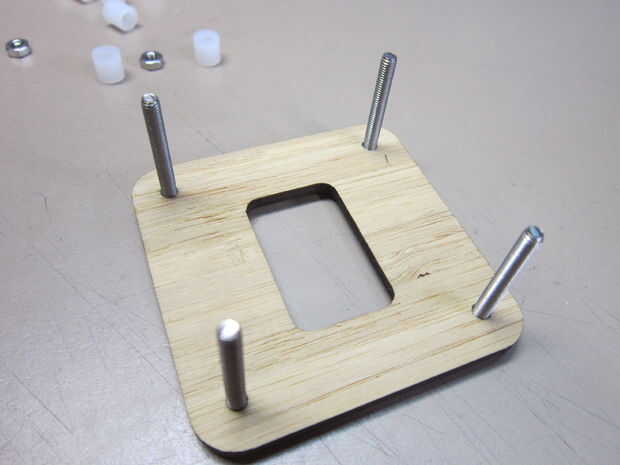 El caso del bambú es atractivo y fácil de montar.  Sólo sigue las imágenes y añadir las piezas en orden.  Basta con apretar las tuercas pequeñas a mano.
