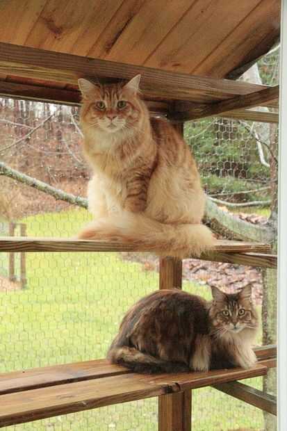 Hemos considerado el hábitat pero decidió no de tinción como no sé si hay algún efecto prolongado podría tener en los gatos. La madera está descolorida, pero particularmente no moleste. Sin embargo, un problema no de lijado y acabado el hábitat es piel de gato de ese ansiado cabello queda pegado a las grietas en la madera y es difícil de limpiar. Utilizar una lavadora varias veces al año a suavemente el pelo de la madera sin lo astillas. Entonces, una vez por semana durante el verano que la manguera.