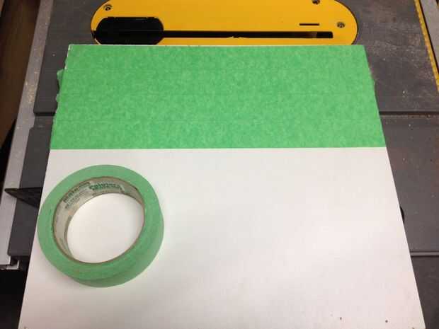 Así que quería pegar la plantilla sobre el MDF; pero no quería estropear la superficie del MDF con el pegamento. Entonces yo colocar 4 tiras de cinta adhesiva, y luego colocar una ráfaga rápida de adhesivo en aerosol en la cinta, que me permitió pegar el papel para el MDF.