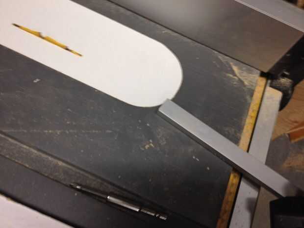 Usted quiere asegurarse de que una pieza de trabajo no enganchar en el borde del inserto como alimentarla en, y luego también eso él no quedar atrapado en la parte posterior de la mesa como sale el relleno. Debido a esto; Levanté la Sierra 1/4 de vuelta y tomó un poco más material de la parte delantera de la estufa.