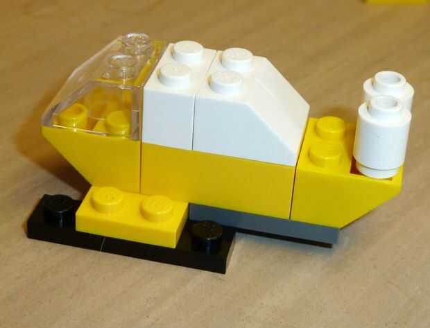 un helicóptero simple para aquellos que no tienen el pequeño lego.Paso 1: Las fotos The gray piece is a swivel to allow the rotars to spin freely