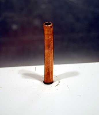 Corte un tramo corto de tubería de 1/4 pulgada de cobre. Debe alcanzar la longitud de aproximadamente una pulgada por encima del horno a aproximadamente una pulgada por encima del piso del horno. Mi pipa salió de 9 pulgadas de largo. Ahora perfore un agujero de 1/4 de pulgada por la parte superior del horno. (Previamente perforé mi agujero con un poco más pequeños primero para hacer la penetración con el grande 1/4 de pulgada bits mucho más fácil). El tubo debe caber agradable y apretado. Si usted necesita sellar alrededor de la tubería Asegúrese de utilizar el sellador de alta temperatura.