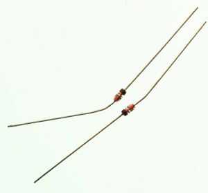 Uno de los problemas con el desbordamiento de mi diodo es que algunos tipos de diodos no están marcadas, excepto el plomo del cátodo, en particular, los diodos zener. Estos han sido la pesadilla de mi existencia, como si no marcarlas de alguna manera (generalmente con cinta adhesiva y un rotulador) que nunca recordar o saber cuál es el voltaje de zener. Verás, Zéner no colores como resistores e inductores, no tienen números útiles como los condensadores, y raramente, si siempre, tienen cualquier número de componentes marcado en sus cuerpos brillantes, tubulares.