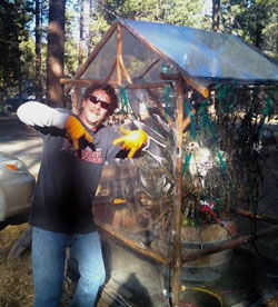 www.discountvisqueen.com. Abrigo de burbuja grande también se recomienda para el aislamiento del efecto invernadero. Se trata de una foto de mi amigo, Brian, en Tahoe. Su efecto invernadero es transparente y está hecho con visqueen. También utilizó luces de árbol de Navidad del LED en vez de la gran variedad.