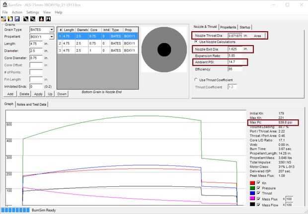 -Nota que BurnSim también puede calcular el diámetro de salida "lo mejor" pero no se proporcionan detalles de ese cálculo.