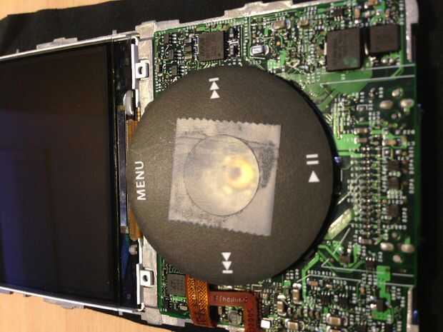Primero coger su rueda y poner un trozo pequeño, cuadrado de cinta sobre el agujero donde va el botón del medio y luego pegar el botón del medio en el orificio de la parte posterior para que la cinta mantiene en su lugar y no caer. Luego, tomar el marco del metal y empezar a poner diferentes componentes en la misma. Comience con la placa base. Debe encajar muy bien en un lado del marco, donde el marco tiene un guión curvada de la parte superior de la placa base. Realmente tipo de cruzar el marco y la placa base a ponerlos juntos. Antes de terminarles pegadas, fijar la rueda al lado de la placa, que parece que tiene cinco botones pequeños en él. El cable de cinta debe envolver al otro lado de la placa base e ir a una de las ranuras de cable de cinta. Poner ahora en la pantalla. Pegar el cable de cinta por el agujero grande y ajustar el cable en la ranura cosita, luego pone la pantalla en el marco de la. Tome el panel delantero (OEM, o IVue) y fijarla al bastidor con 6 tornillos. Se puede usar menos si usted no puede conseguir las seis (yo no), y realmente no debería afectar el resultado. Una vez que el panel frontal esté fijado firmemente a la estructura metálica, puede tomar la cinta de la rueda.