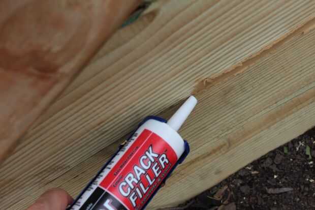No que esto era totalmente necesario, pero he visto que otros habían hecho en sus canteros de jardín. Usé el crack filler para rellenar las juntas entre las placas de la parte inferior dos.