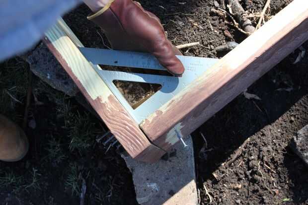 Usar un cuadrado para hacer que las cosas en ángulo de 90 grados y utilice su nivel para asegurarse de que las tablas son nivel al suelo y con los demás.