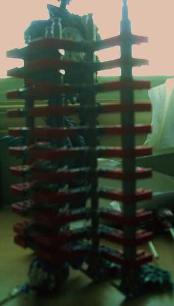 El siguiente paso es colocar este plana sobre la superficie del edificio y coloque varillas 4 x 190 mm. alternando el orden, coloque a un espaciador abajo estas cañas de 4. Siga esto con un espaciador de la barra gris y repetir hasta llena completamente la barra.