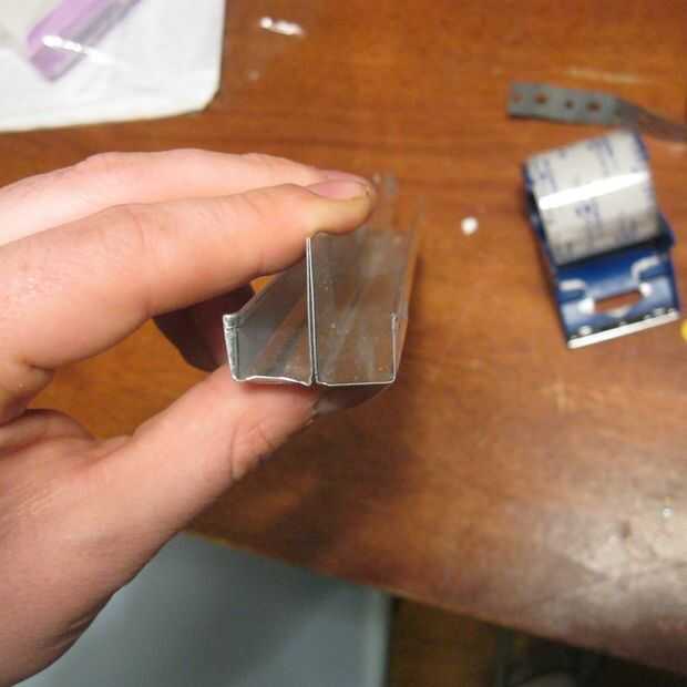 -Doblar la cinta de fontaneros, como una L, para que sostenga por la pista