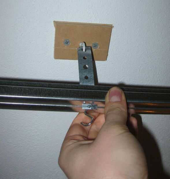 -Colgar el otro extremo de la correa de plomería en los ganchos en el techo