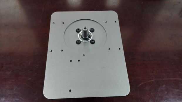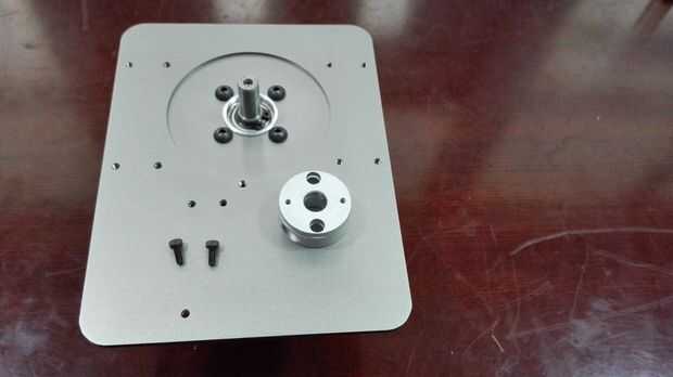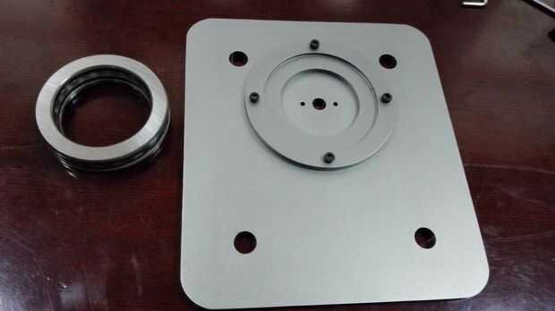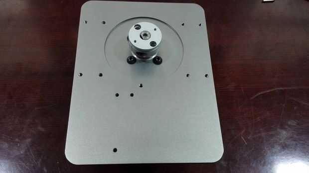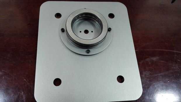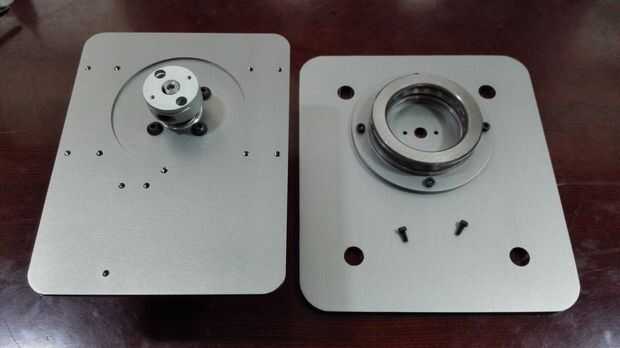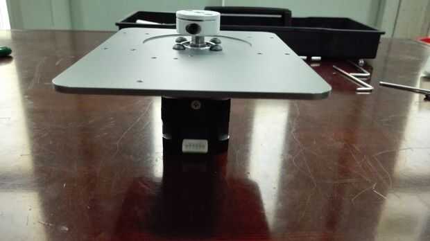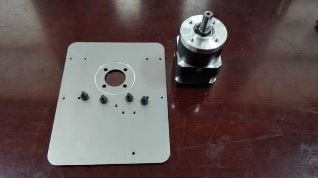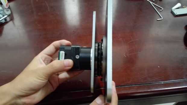 Fije el anillo de almohadilla del cojinete y la base del brazo Dobot con 4 tornillos de M3 y luego el gran empuje del cojinete de la almohadilla. Montar el cojín del motor con el motor de paso DB-E02 4 M4 * 6 tornillos y luego fijar el acoplamiento con el motor de paso. Fijar el motor de paso con el teclado de la base con dos tornillos. Debemos tener cuidadosos con el acoplamiento para asegurar que podemos apretar el motor estable por lo que el extremo inferior del acoplamiento es horizontal con el borde del eje del motor chaflanado.