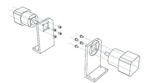 Respectivamente, montar el motor de paso DB-E01 dos con la derecha e izquierda soporte pad por cuatro M4 * 6 tornillos.