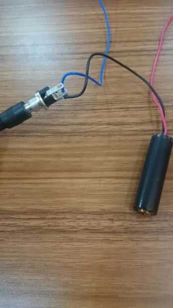 3. Conecte la línea negra de la cabeza del laser con el negativo de la fuente de alimentación de 5V y la línea roja de la cabeza del laser con el positivo de la fuente de alimentación.