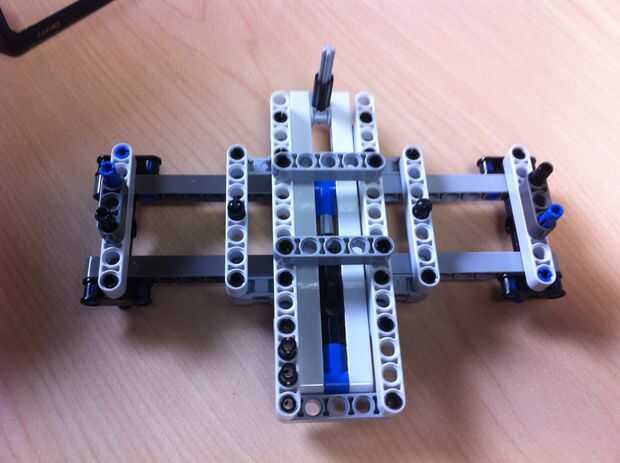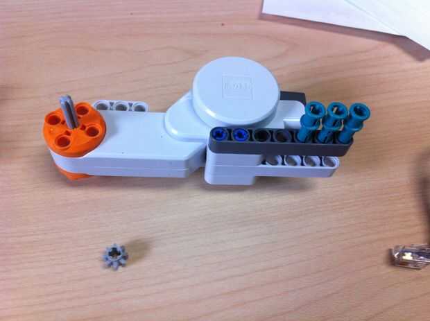 Para construir una base que sostenga y gire el botón, usted necesitará un servo motor, 3 ruedas grandes para los pies, un par de gomas y varios elementos de técnica.