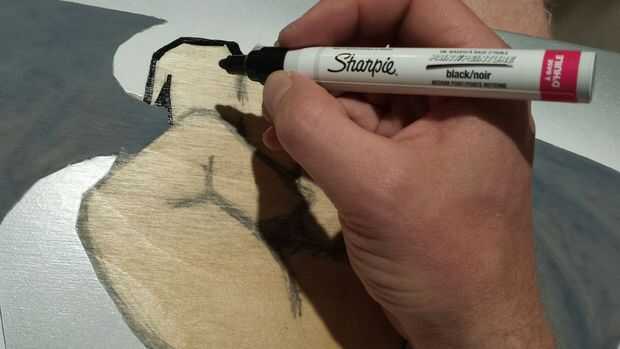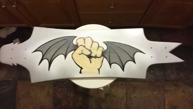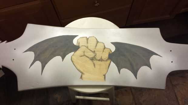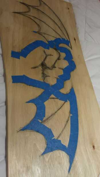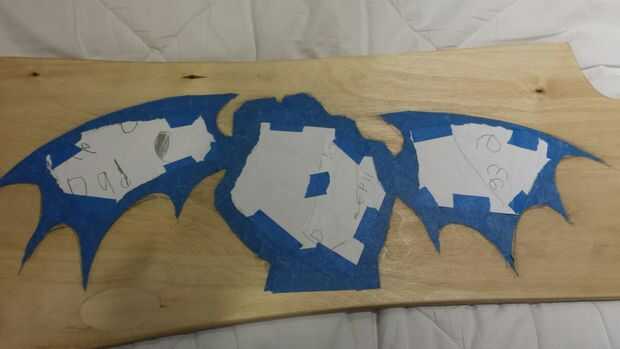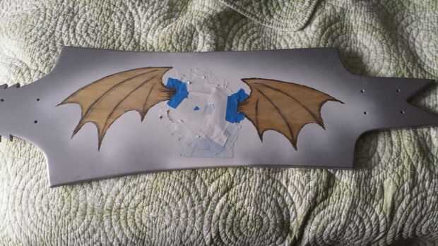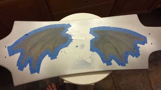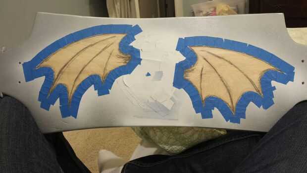 Una vez que las alas fueron pintadas pude retirar la cinta. Esto es donde estaba capaz de mantener la apariencia de dibujo al diseño. Tengo un marcador negro y bosquejado otra vez en todas las líneas. Terminó realmente gran. Una vez seca la pintura cubrí all up with 2 o 3 capas de poliuretano.