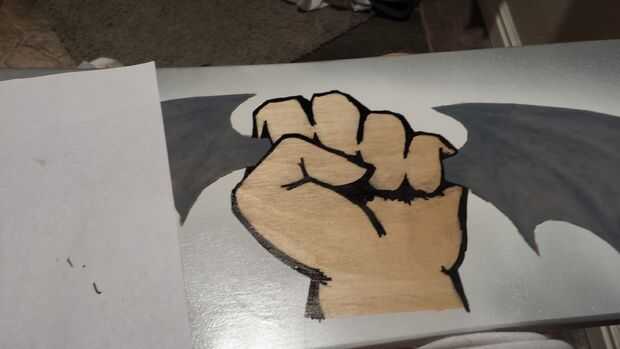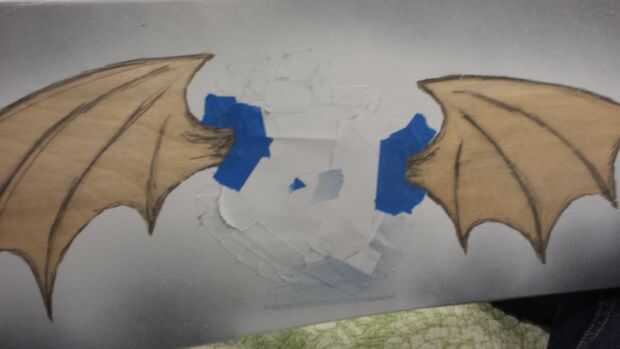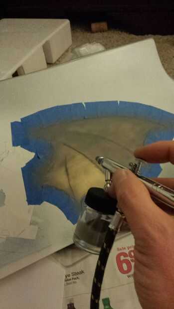 Después de este secado quité la cinta para las alas. Mantuvo la cubierta en el puño como esto iba a permanecer el color madera natural. Luego con cinta de la parte exterior de las alas. Esto es donde obtuve mi aerógrafo nuevo busto. Este fue su primer viaje, y todavía hay mucho que necesito aprender sobre el uso de lo. Seguro que fue muy divertido aunque.