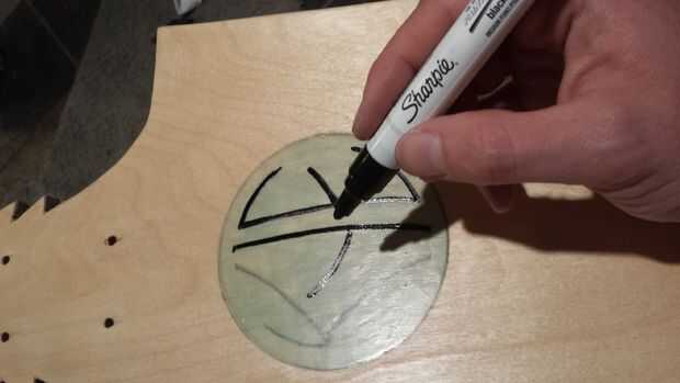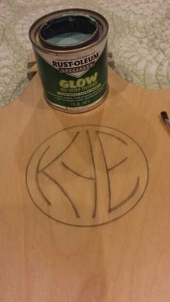 La parte superior era un poco más simple. Yo sabía que quería el logos que brillan en la oscuridad, por lo que he encontrado algún resplandor en la pintura oscura. Haber usado esto antes, sabía que necesitaría varias capas. En realidad pongo unas gotas de azul colorante en la pintura también ya que quería más del color demuestre a través. Me puse 3-4 capas de pintura para lograr una buena luz sólida. La última capa era algo gruesa para asegurarse de que brillaba bien.