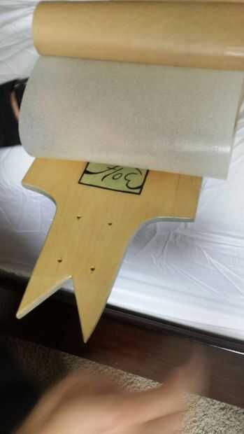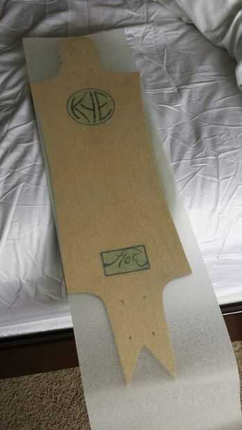 Poner cinta de agarre en puede ser un proceso bastante delicado, sobre todo si el ancho de la Junta en algunos puntos es lo mismo que el papel. La mejor manera que he encontrado para hacer esto es alinear el papel sobre la parte superior de la Junta. Entonces, sólo Retire las pulgadas de par superior del papel del forro y se adhieren a la nariz del tablero. Una vez que se ha quedado atascado en, lentamente retire el protector más y rodar a la tarjeta. Esto detendrá cualquier contratiempos con la cinta que se pega a sí mismo.