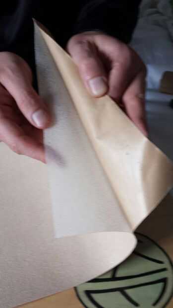 También, el rodillo hacia fuera el aire que está atrapado debajo de la cinta del centro a los lados. Esto no será grande, pero para esto, ya que la cinta estaba clara, que quería asegurarse de que el logos demostró a través de realmente bien.