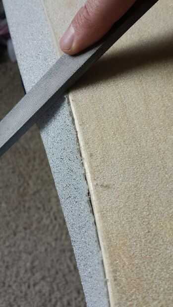 Una vez que la cinta es todo sobre, luego viene los procesos de corte hacia fuera. Utilizar un archivo para ello. Simplemente raspe el archivo a lo largo del borde del tablero y se creará una transición agradable desde la cinta a tablero. Tarda un poco más tiempo que cortar con un cuchillo, pero creo que termina mirando mejor.